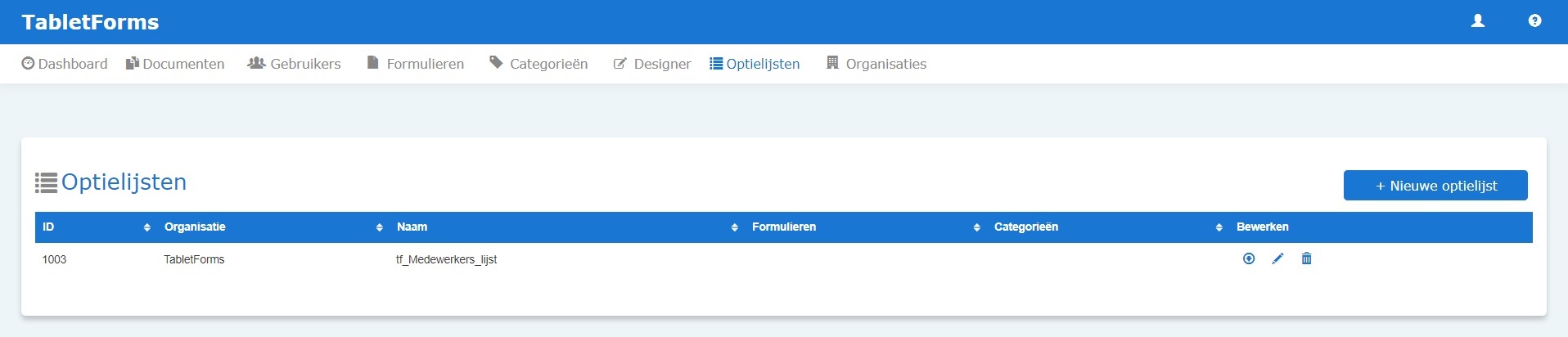Option lists contain one or more values which can be selected in a document field and are assigned to one or more form templates. When updating a option list all assigned forms are also automatically updated. The name of the option list must be the same as the field name in the form template.