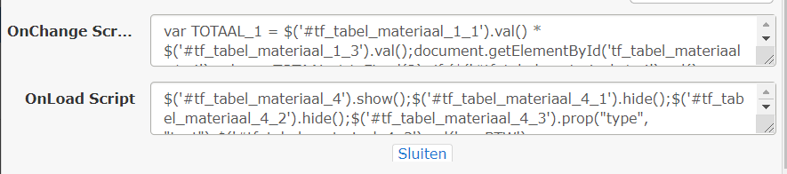 Voor meer gedetailleerde informatie over de onchange en onload scripts klikt u Hier.
