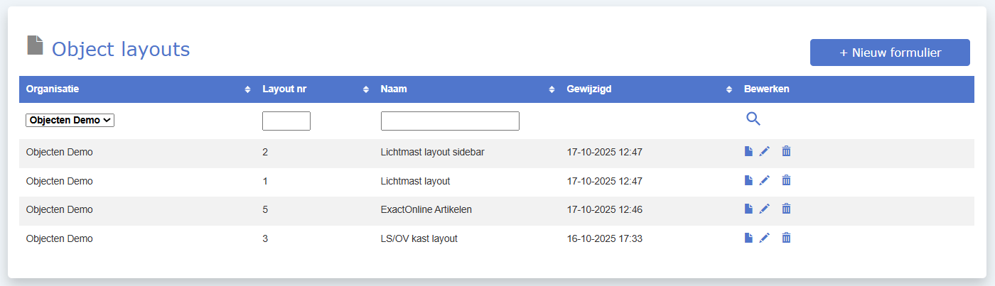 Layout nr: Het unieke nummer van het object layout (door het systeem aangemaakt)