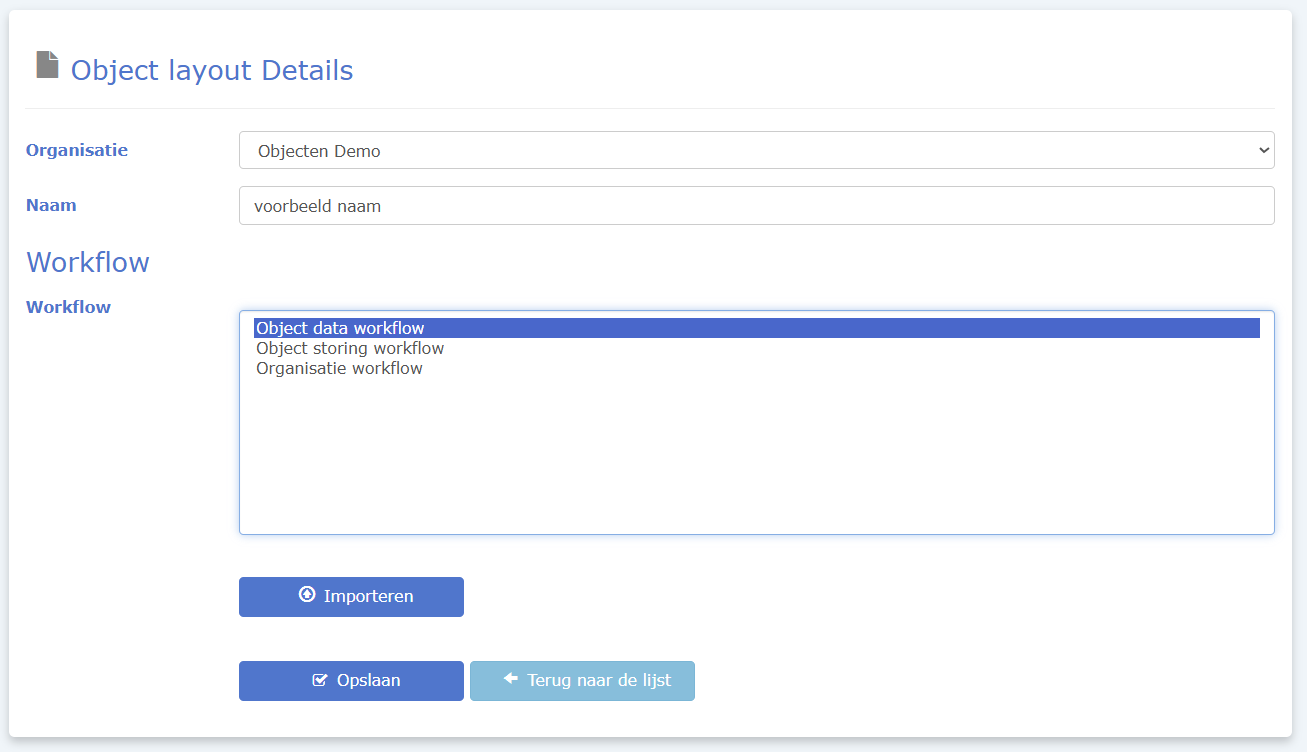 - Kies eventueel de Workflow waar het object moet gebruiken
