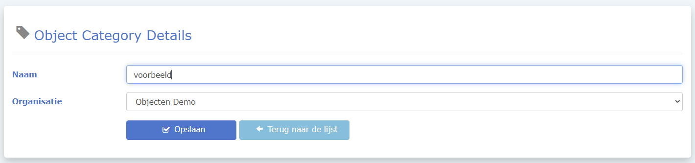 3.) Selecteer Opslaan om de nieuwe object categorie aan te maken.